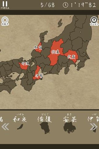 あそんでまなべる 旧国名パズルは、ジグソーパズル感覚で旧国名を覚えられる無料のアプリです。クリアタイムに応じて家紋パネルが獲得できるというやり込み要素も強いので、歴女など歴史好きの人はもちろん社会人や日本史を学ぶ学生も楽しんでチャレンジできます。